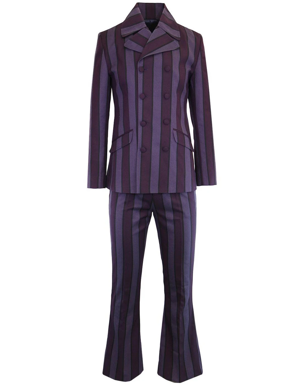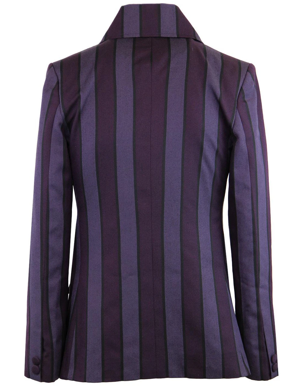 – Textured purple and lilac retro stripe details.