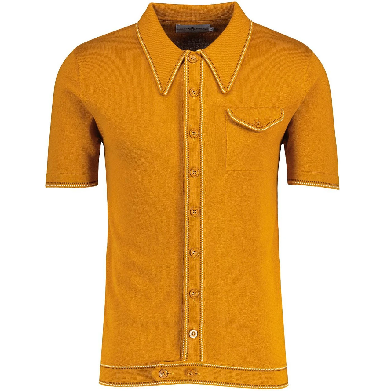 - Madcap England ‘Crawdaddy’ย Short Sleeve Polo Cardigan in Buckthorne.